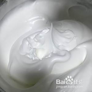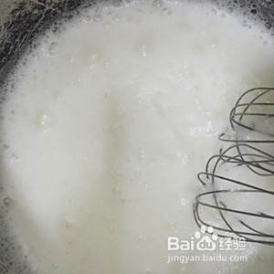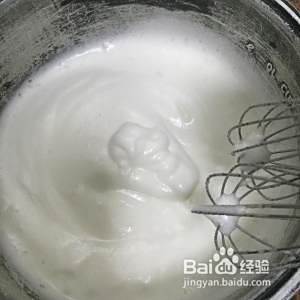 蛋清制作:先将塔塔粉加入蛋清中!用电动打蛋器打发蛋清到起鱼眼泡就可以第一次加入三分之一的白糖