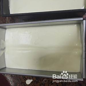 在吐司模里垫一张油纸!倒入蛋糕糊!八分满就可以了!再把模具在桌子上震几下排出内部大气泡!