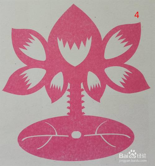 第四步:剪完之后展开就是荷花灯纹样的剪纸了。如下图所示