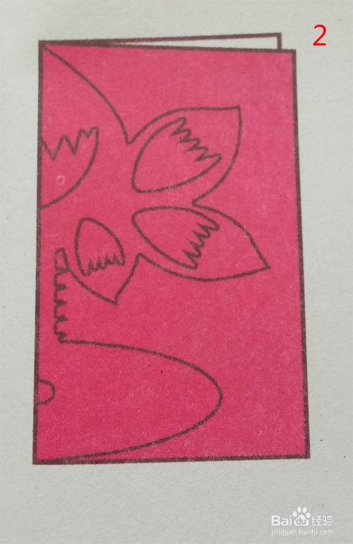 第二步:在叠好的彩纸上画上一半的荷花灯图案,如下图所示
