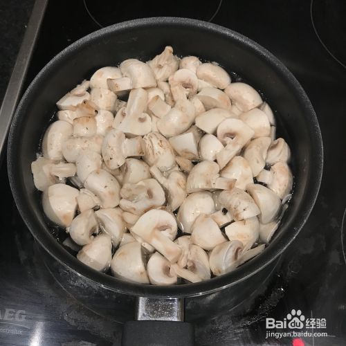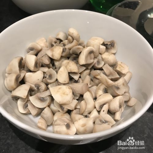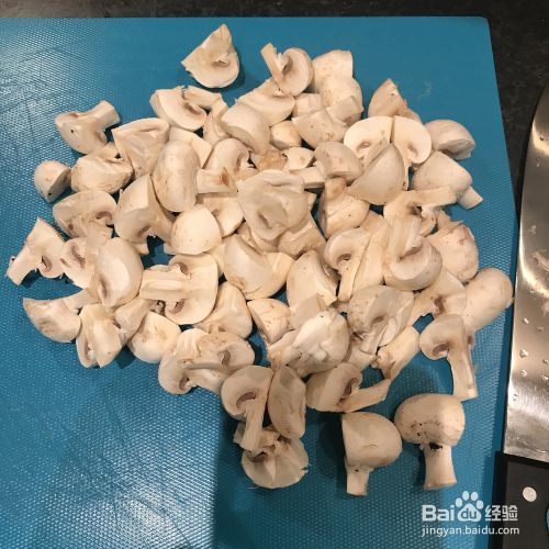 先切蘑菇。我买了一个小的圆蘑菇,每个都被切成四块。如果你想要一个大一点的,就把它切成两半。