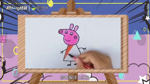 4给小猪佩奇涂上粉色,给衣服涂上红色即可。