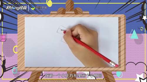 1用铅笔画出四条平行线,将其连成小正方形,在第一个正方形里画个小椭圆。