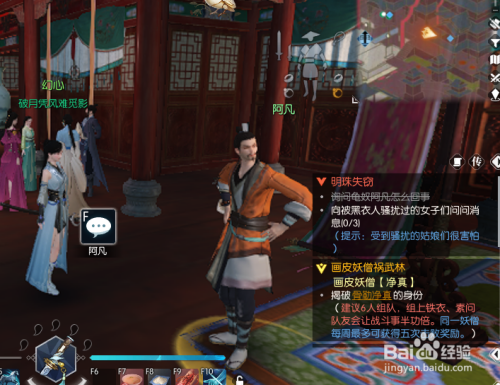 对话结束后身后一位叫云依的npc头上会出现红叶,说明有奇遇触发了,与云依对话后成功接取明珠失窃任务。