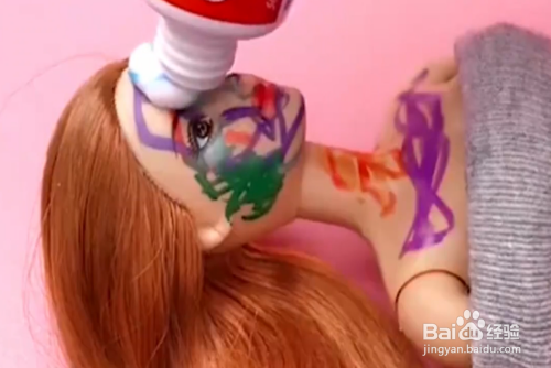 然后用卫生纸一擦,芭比的脸就洗干净了