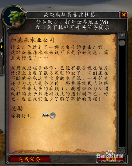 魔兽世界怀旧服中,在塔纳利斯的小镇加基森做完任务[加基森水业公司],会接到一个后续任务[腐化之巢]如何完成该任务呢?
