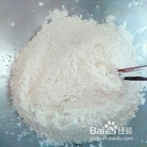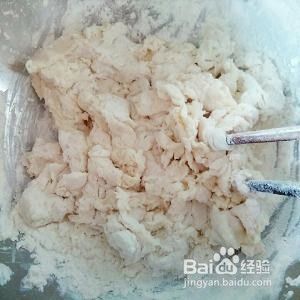 把温水和酵母粉、糖搅拌化开,倒入面粉。