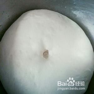覆盖放到温处发酵至两倍大。用食指插入面团,取出后凹洞不反弹发酵完成。