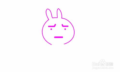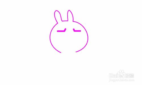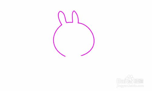 画出兔子的面部轮廓和两只耳朵。