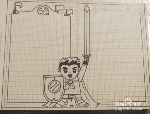 接着我们画出左边的内容框,左边内容框我们可以画出毒品的危害,所以有骷髅,毒品旗子等元素。