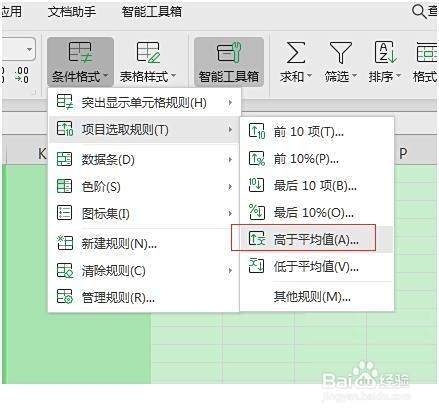 2、标记出高于平均值的。爹称欧还是条件格式--项目选取规则--选择【高于平均值】,在设置样式。