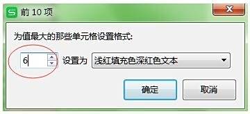 3、标记出前N名的单元格。选择【条件格式】-【项目选取规则】-【前10项】,再设置前n项,比如你想找出前6名,就把10改成6.最后再设置标记样式。