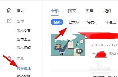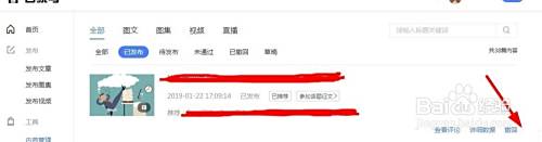 登录到百家号平台内容管理里选择已发布的文章