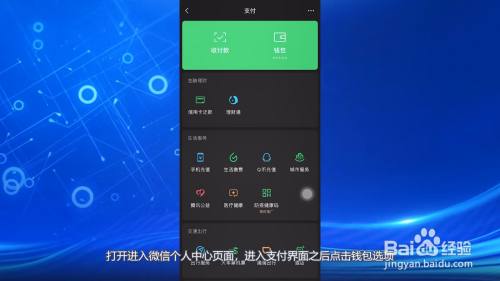打开进入微信个人中心页面,进入支付界面之后点击钱包选项。
