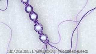 6掉过头,把临时结解开,中间穿珠,旁边编5次蛇结,直到又穿完3颗珠子。