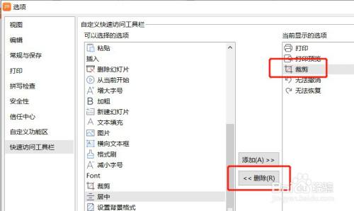 PPT怎么让快速访问工具栏不显示裁剪按钮
