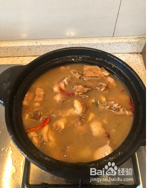 翻炒均匀后加入烧开的开水,一定要加开水。不能放冷水。转入砂锅炖。水大概淹过鸭肉就行。