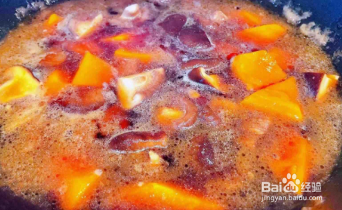 锅里添加适量清水,开大火煮一刻钟左右,等牛肉煮至七分熟,放南瓜继续煮五分钟,再加入香菇继续煮五分钟
