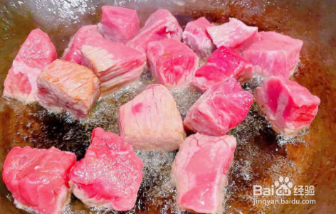 锅中倒入底油,等油烧热后倒入牛肉块,大火快速翻炒,炒至牛肉变色再放入葱姜蒜爆香