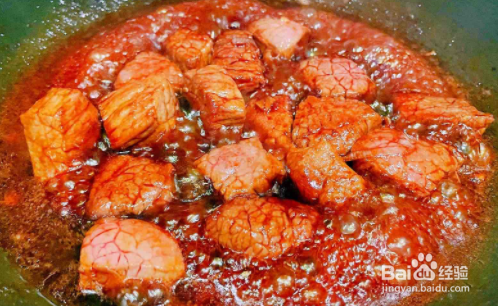 放入酱油、糖、蚝油、料酒等,继续翻炒至牛肉入味