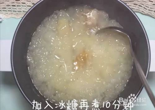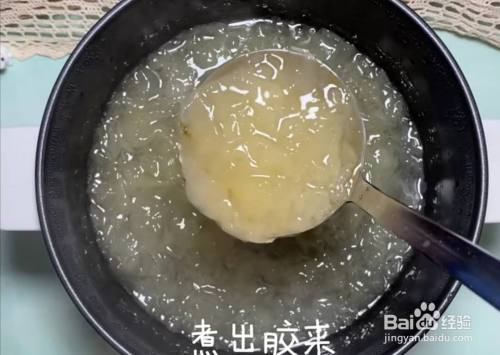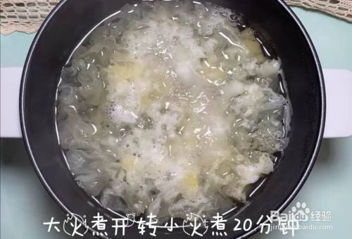 大火烧开,一定要凉水下锅银耳,这样才会出胶多!转小火熬煮20分钟,关火焖上10分钟。