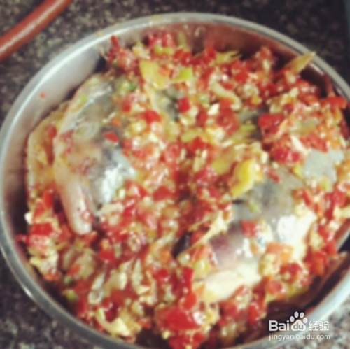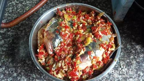 把拌匀的鱼放入大的器皿,上锅蒸45分钟