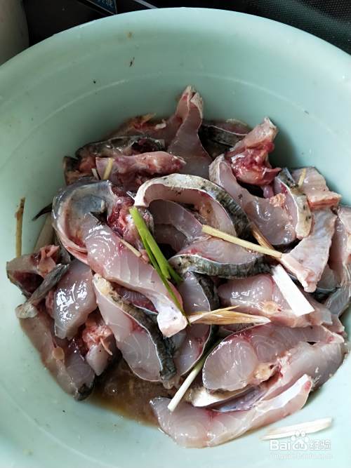 将鱼切成大小相同的块状,放生抽,料酒腌制15分钟