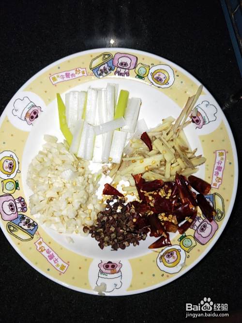 锅里放油,烧至八成热。放入切好的葱姜辣椒花椒,炒熟备用