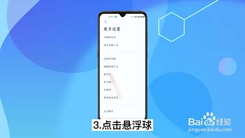 打开手机找到并点击设置,点击更多设置,点击悬浮球选项,打开悬浮球即可设置返回键。