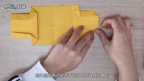 8将外侧的两边,顺着折痕向内折叠成三角形。