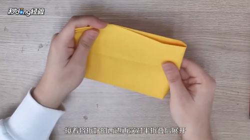 4接着将折好的两边再次对半折叠后展开。