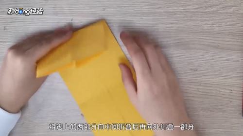 6将边上的两部分向中间折叠后,再向外折叠一部分。