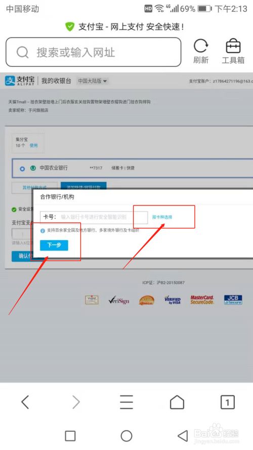 进入付款页面后找到“添加快捷/网银付款”,进行下一步。