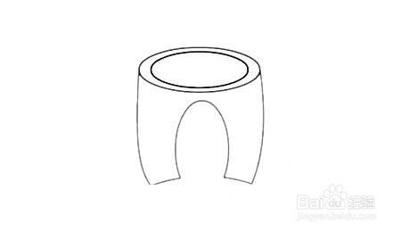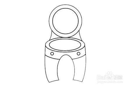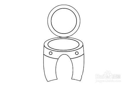 我们再画两个圆作为梳装台的镜子,我们在梳妆台的身子上画两个圆点,作为小收纳盒