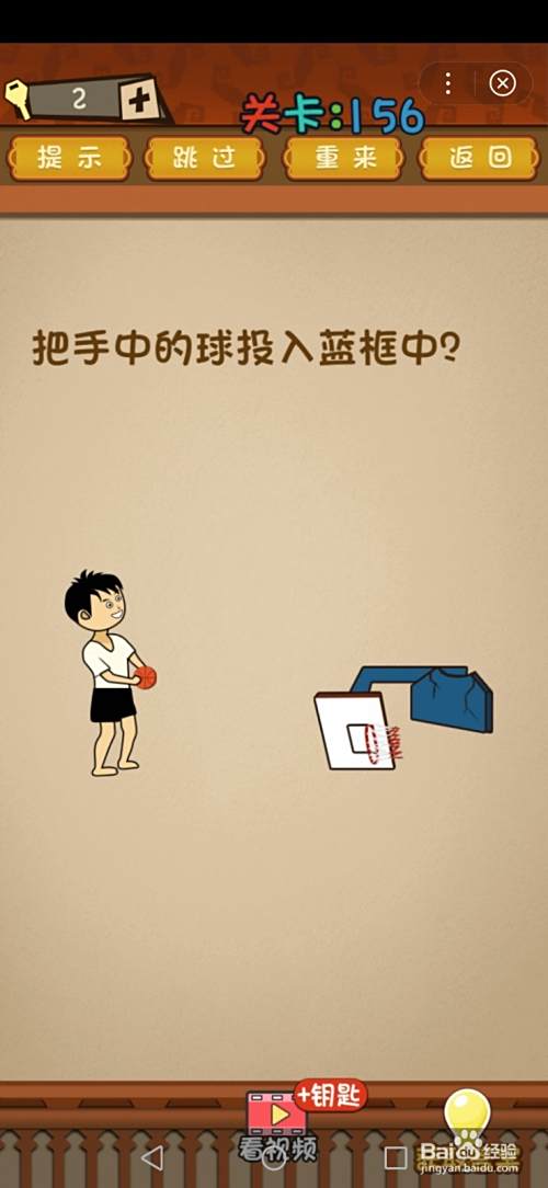 第156关先点击篮球架底座几下,篮球架断了后,点击拿着篮球的人就过关了。