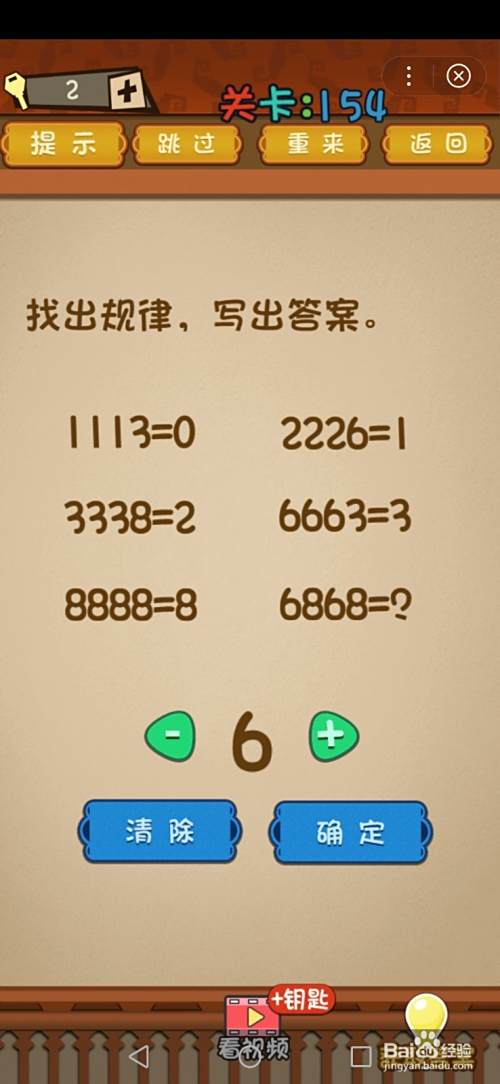 第154关答案是6,将数字调成6,然后点击确定就过关了。