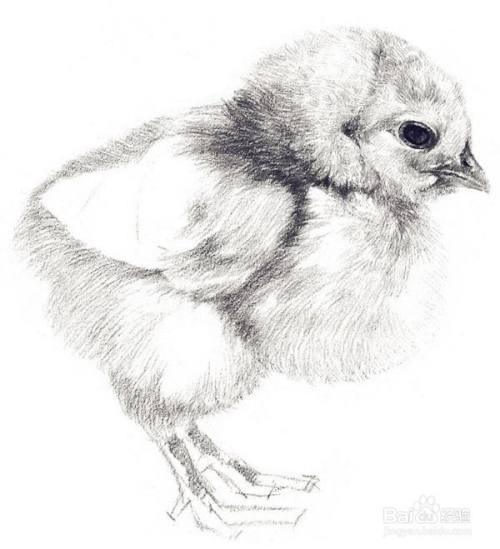 素描小鸡的时候,各位可能需要事先来关注一下画好的成品,然后再观察成品中各个大块的细节处理,然后再开始起笔画,这样就能够让各位画者可以更加细致的画好这只小鸡了。