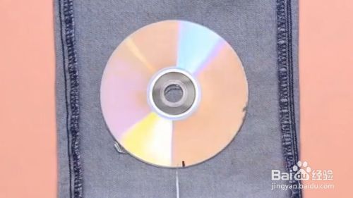 按照光盘大小大致裁剪一下,并将光盘边缘的牛仔布料进行裁剪
