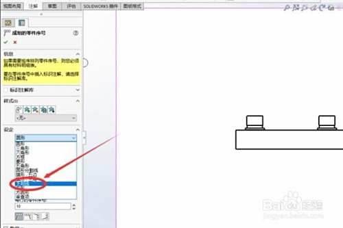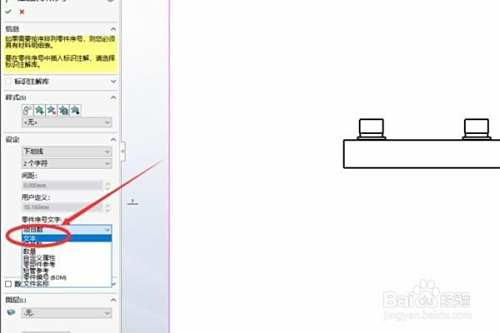 将“零件序号文字”里的内容改为文本,若装配体三维建模时已经定义好了,这里则不需修改。