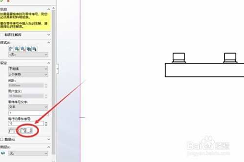 在左边“成组的零件序号”的选项卡中,将“设定”一栏里的内容改为下划线。