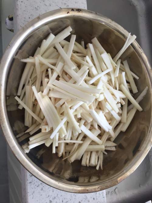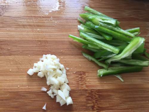 5倒入茄子翻炒,炒到茄子变软,如果锅干了就加入少量的水。茄子炒软后加一勺酱油。