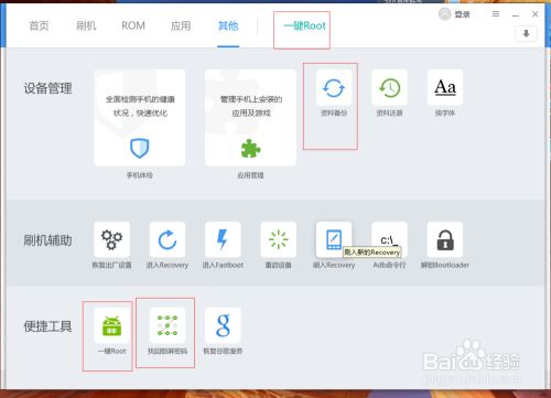 找回密码:连接到电脑后进入刷机软件的菜单。可以看到找回锁屏密码,在这里可以解决大部分手机忘记密码的尴尬。