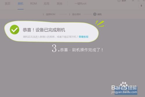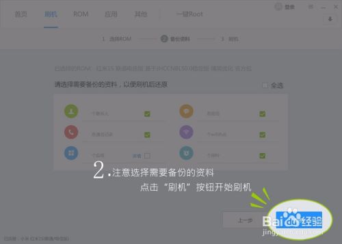 刷机前,备份手机内容。如果需要的话。点击刷机。开始刷机直到完成。
