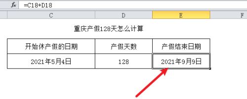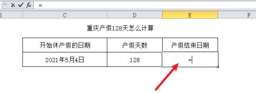 接下来输入重庆产假128天计算公式:开始休产假的日期+产假天数。最后点击回车键即可完成重庆产假128天的计算