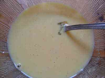 将鸡蛋打匀,加入牛奶,再加少量精盐,绵白糖,味素(鸡精就更好啦!)