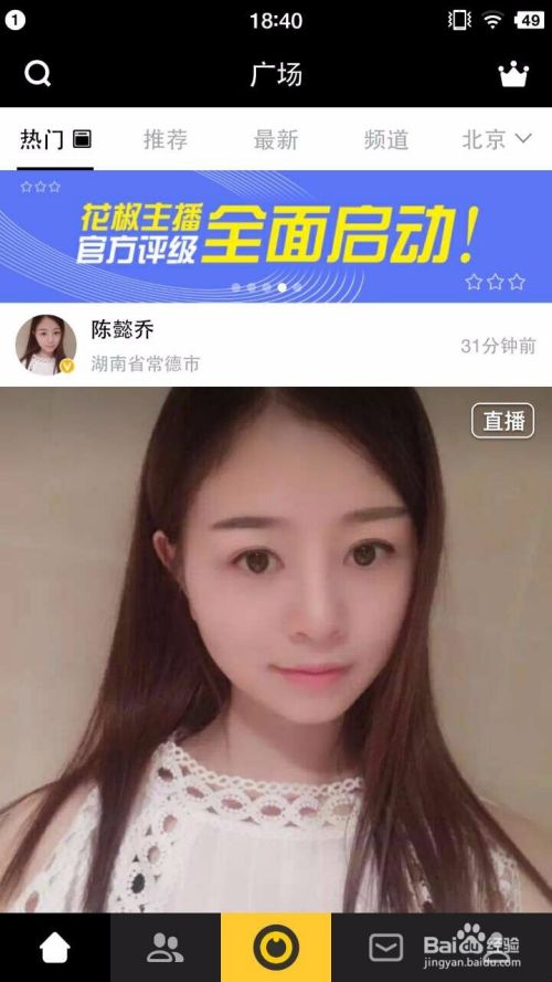 首先,在各大应用市场下载“花椒直播”,下载安装好后会进入如图界面。