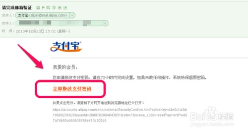登陆邮箱后,我们会看到这样一封邮件,点击邮件中立即修改支付宝密码的链接,如图。