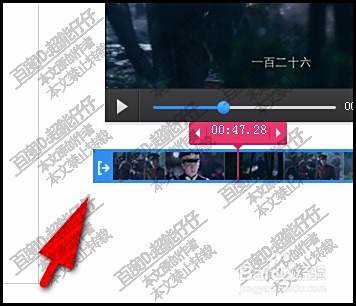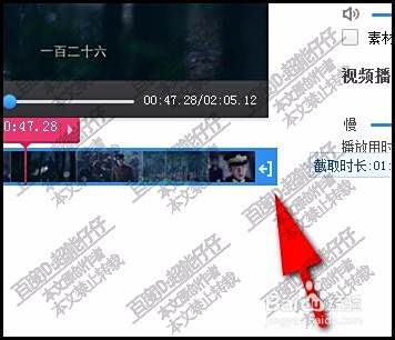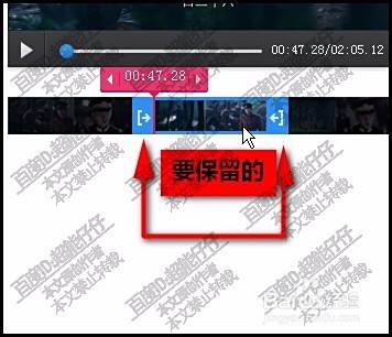 移动这两个图标,以裁剪视频的长短。需要哪一段的,就把图标移到哪。两图标之间的这一段视频就是要保留的。