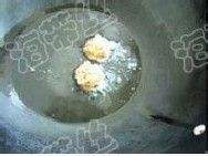 锅内放适量油(能煎肉丸子那么多就成),将搅拌好的肉馅用勺子或者手捏成比乒乓球稍小的丸子,一个个放到锅里煎至熟透金黄,捞出沥油;