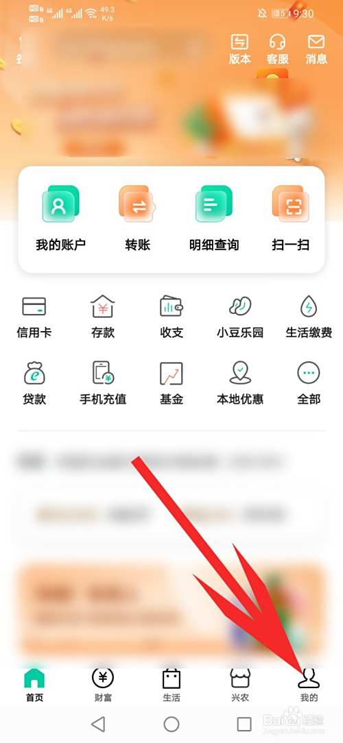 首先,打开手机上的中国农业银行app,登录自己的账户,点击右下方的我的